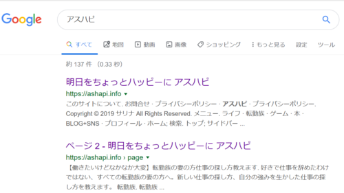 ちなみに、当サイトを検索するとこういう結果が出ます。