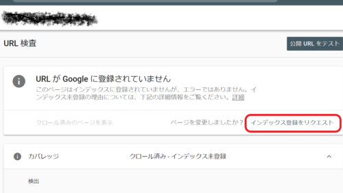 そこで、赤い丸で囲んでいる「インデックス登録をリクエスト」をクリックしてください。